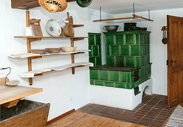 Die etwa 20 m² große Backstube ist mit einem heimeligen Holzboden und einer gemütlichen Eckbank mit Tisch ausgestattet. Hier wird im Rahmen von Veranstaltungen der Brotteig zum Backen vorbereitet, der anschließend im originalgetreuen Holzbackofen gebacken wird.